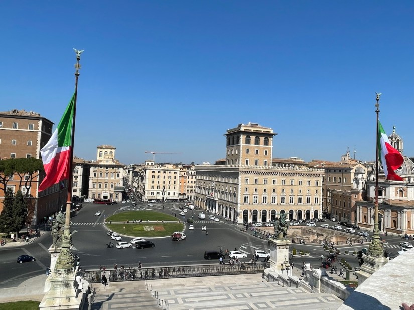 It’s HUGE. It’s also located on the very busy and bustling Piazza Venezia– a main traffic plaza. (Seriously, watch yourself here!! There are cars that seem to come from all different directions. It’s a huge roundabout.)