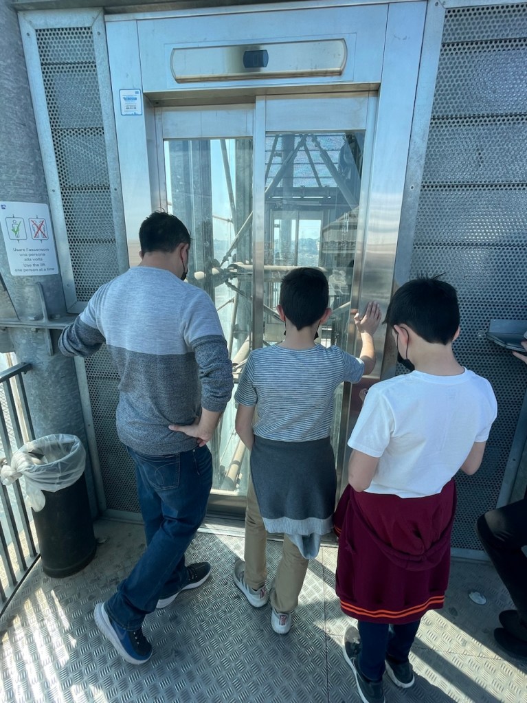 After a gift shop stop, where Asher bought a magnet for his Religion teacher :), we were outside by ~6:35 p.m.