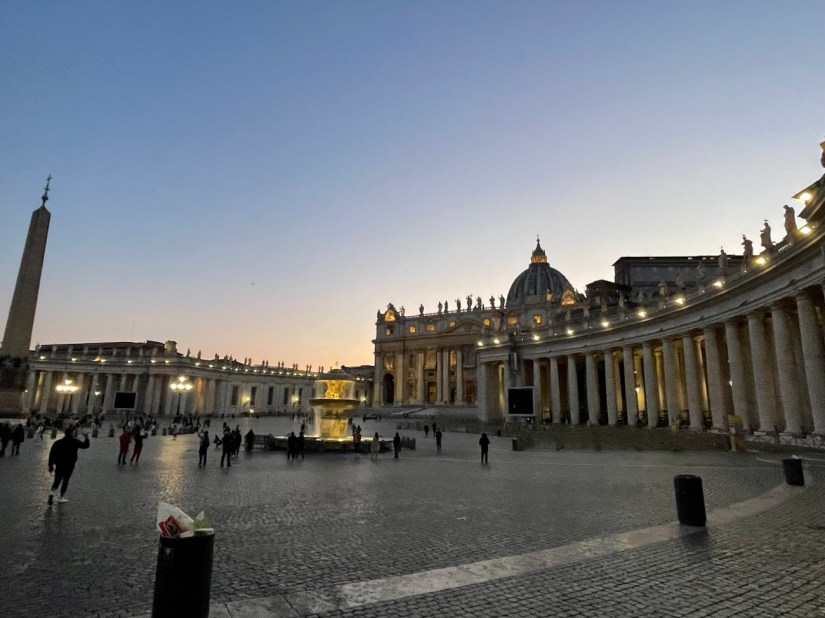 We were treated to yet another viewing of the beautiful St. Peter’s Square at dusk. I am convinced that this is the most spectacular time of day to view the square!! So lucky that we saw it twice with this magical lighting.