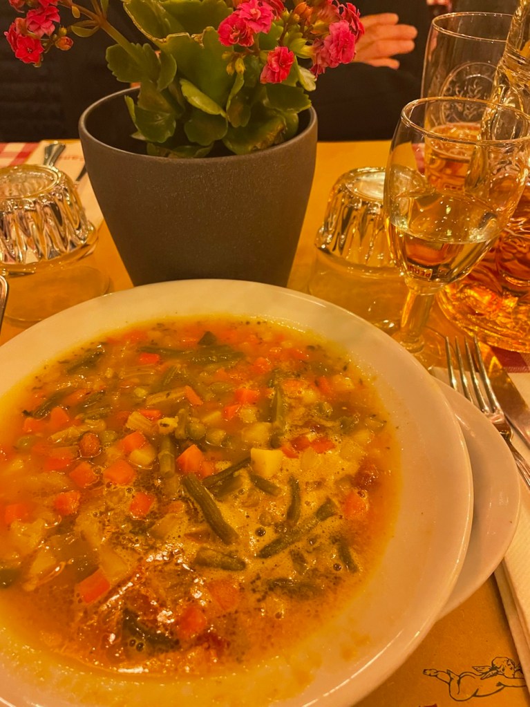 I actually decided to NOT get pizza or pasta this time (I know, weird…). I was in the mood for something really warm on that crisp evening, so I went with minestrone soup.