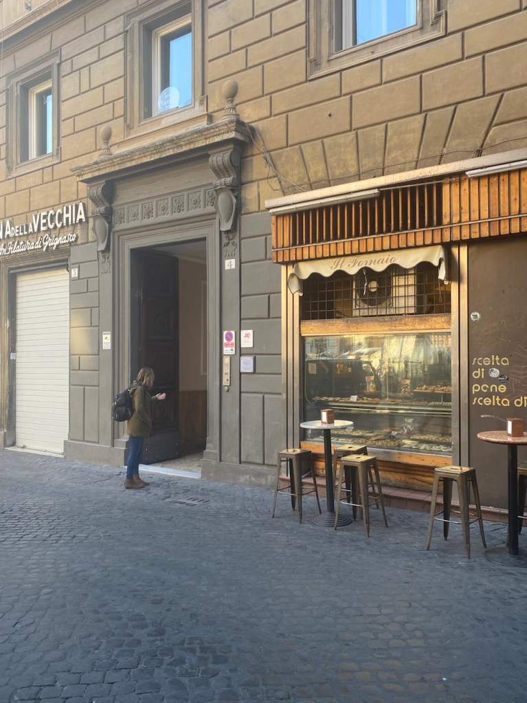 Our hotel entrance below- the actual hotel was up on the top floor of the building. It seemed that each floor was comprised of small inns. Again, I was very happy with our choice of lodging here. Loved the location, and the hotel itself was so comfortable and nice, yet affordable for central Rome.