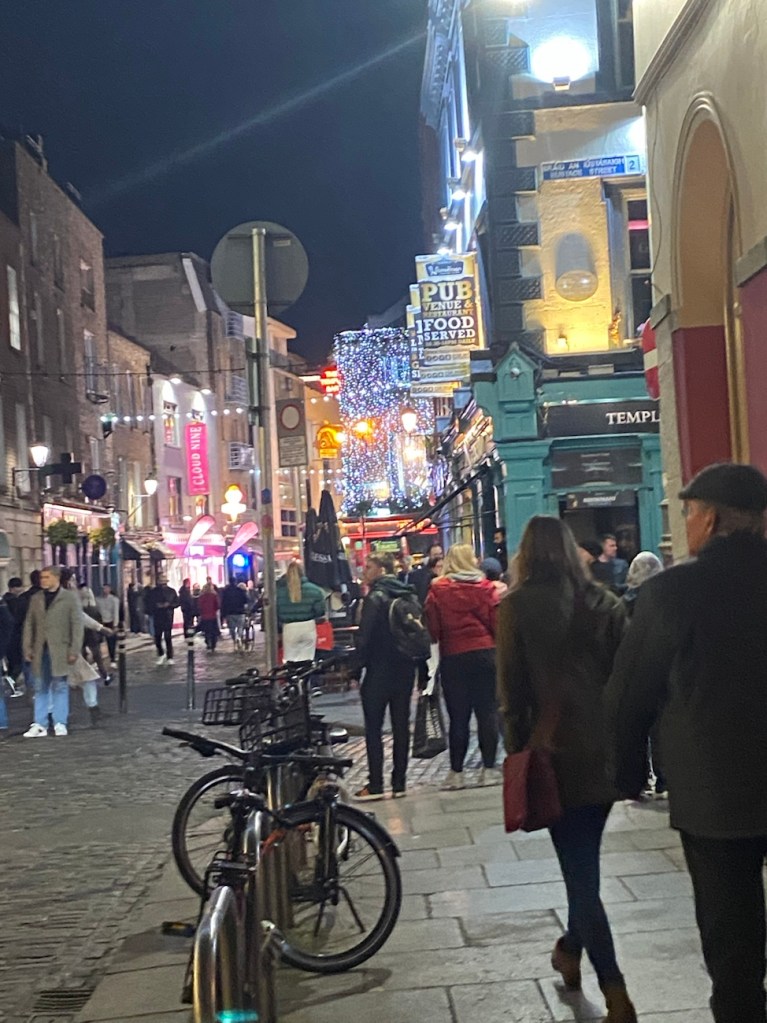 We headed to the Temple Bar area. This is the nightlife/ entertainment epi-center of Dublin. It’s very lively! Lots of pubs, etc.