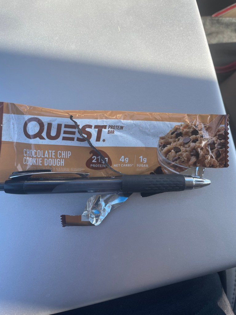 Raced home, grabbed Ethan (again, leaving Asher at home!), and now I am sitting outside Ethan’s indoor soccer practice typing this post. I did not leave enough time to refuel after my workout, so I ran to fill up my gas tank (needed it, anyway) and tried one of these Quest bars: