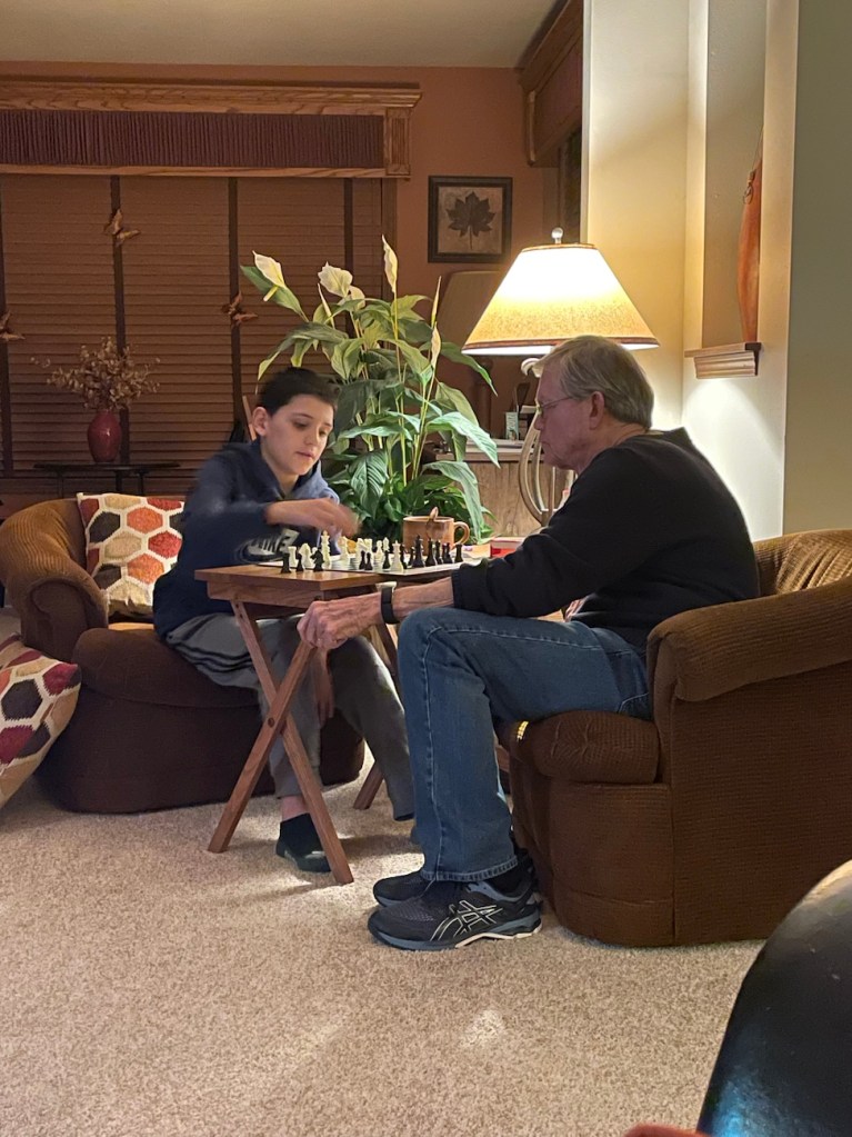 Asher and my Dad played several rounds of Chess. (And I think Asher taught my mom how to play Chess, too. He is in a big “Chess” phase right now.)