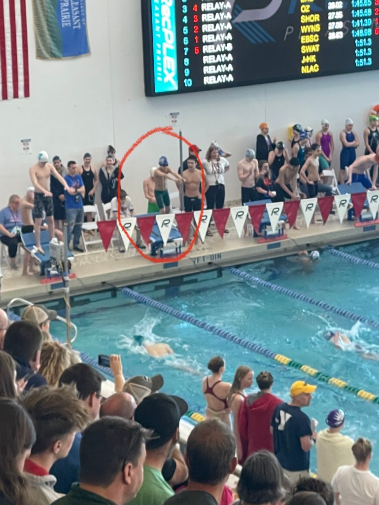 Here is Asher getting ready to dive in on one of the relay legs: