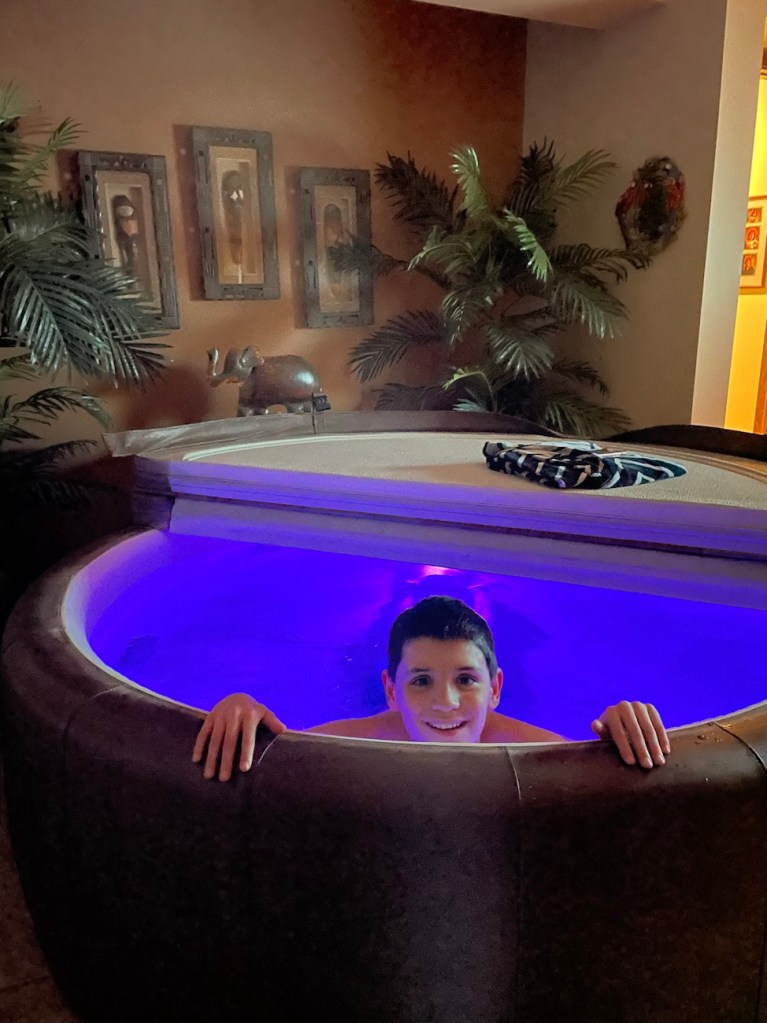 I do love their indoor hot tub room. They have a TV set up in there so they can sit and watch something while in the hot tub, which I really like. My hot tub outdoors is amazing and relaxing, but sometimes when I’m alone it can get a little boring to just sit there! lol. It would be nice to maybe have the option to watch the evening news or a show or something from time to time.