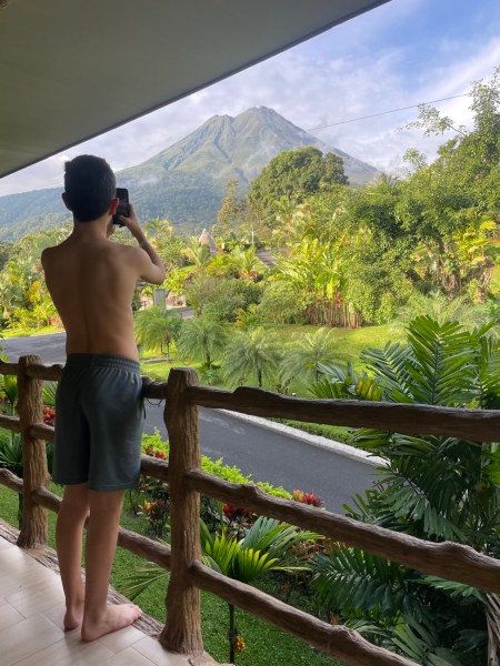 I am so thrilled with our hotel and our room. When I booked this (last.. May, I think?), I decided to “upgrade” to the premium rooms that all have volcano views and are super close to both the breakfast restaurant and the pools. The resort is pretty spread out, so many of the “standard” rooms are really really far away. They actually have a shuttle to get people around, but we can literally walk both to breakfast and the pools in about 30 seconds.