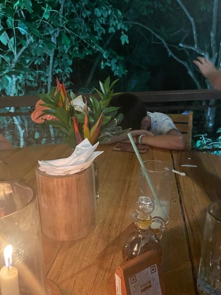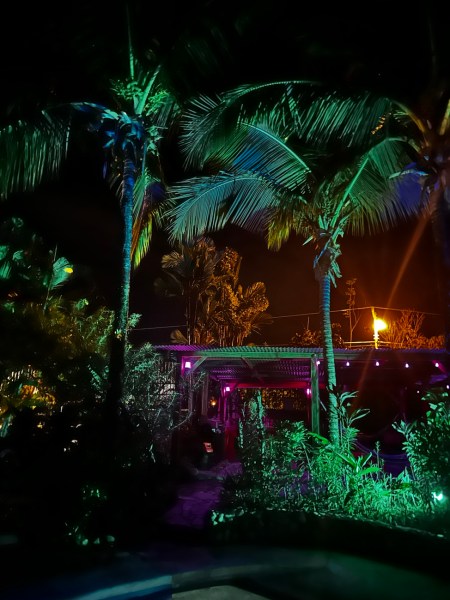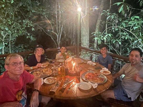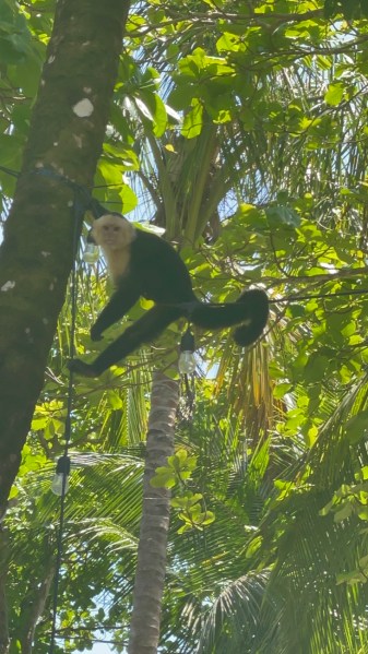 A crazy monkey family was in the trees above us! This one guy tightrope walked across the lights strung up right in front of us, in a very shaky, humorous way. Haha! I have a great video of this.