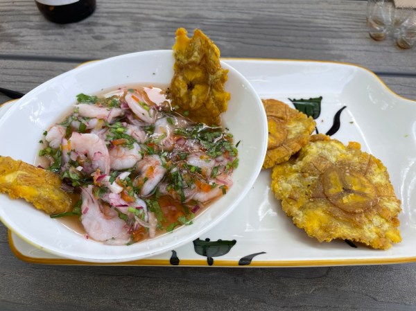 I ordered another shrimp ceviche, which surprised me by being served with these fried plantain chips instead of regular chips! It was tasty and refreshing.