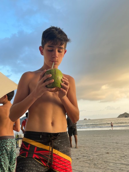 We just lingered until the sun went down. Ivan bought us a coconut from a vendor passing by: