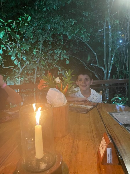 I’m glad we took a few family photos early in the meal, because towards the end, Asher totally conked out! I swear, it wasn’t even late for his standards- just after 9 pm when I took this picture. I guess 6+ hours of swimming and surfing wore him out, though! Haha!! (He always does this on beach trips. I cannot tell you how many times he has fallen asleep at a restaurant table on a beach trip…. when we was little, we used to just toss him on a booth bench with a sweatshirt under his head as a pillow, and he would sleep, happily, right there in the restaurant. hahaha!! It’s his trademark move and we all laugh about it. 😉
