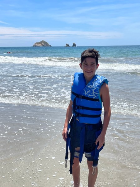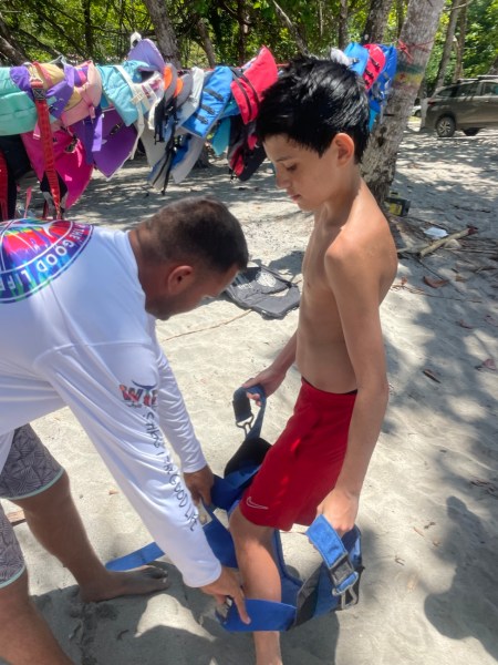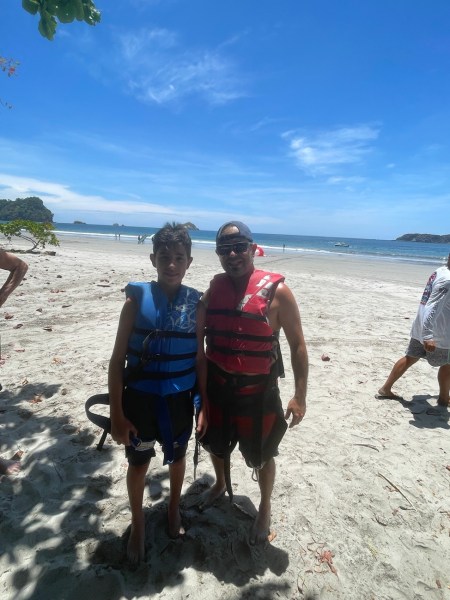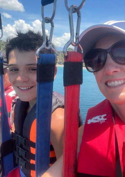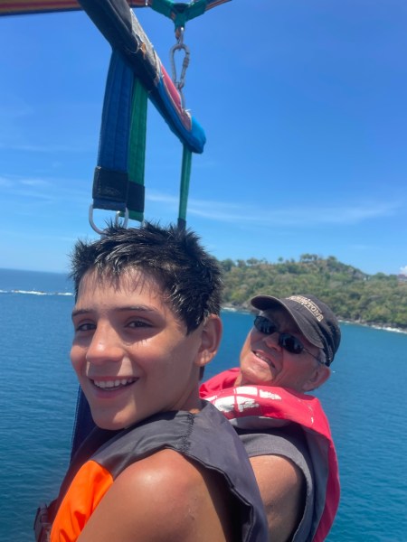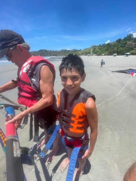 My mom stayed back and watched all of our stuff, and the 5 of us headed down the beach to the parasailing stand. It was determined that we’d go in two groups- me, Asher and my dad together, and then Ivan and Ethan together.