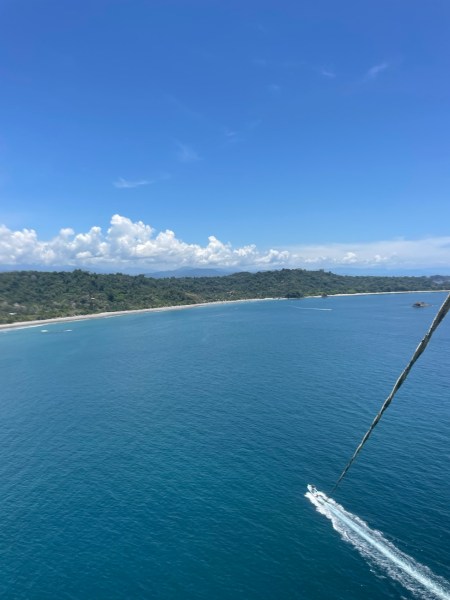 The whole ride was maybe only 15-20 minutes I think. It was so cool! I have parasailed once in Grand Cayman, and I think once in Mexico, but it had been YEARS since I’d done it. Really fun, and I think Manuel Antonio was a great parasailing option. Some beaches are kind of “plain” or just flat, with nothing much to see from the sky, but Costa Rica is so full of mountains and dense jungles that it’s a really beautiful contrast next to the ocean.