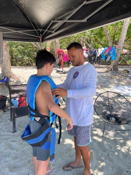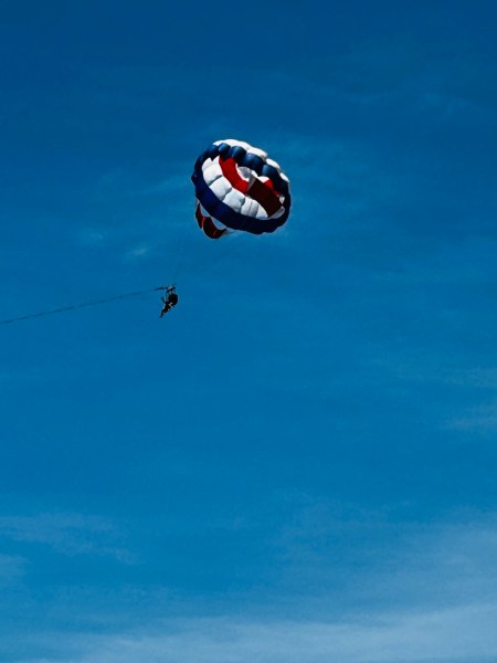 Ivan talked to the beach guy and sorted out the pricing. The boys for sure wanted to do it. My mom doesn’t do extreme heights, and my dad was initially a quick “no” on the parasailing, too. But I have personally parasailed before and I knew that it actually is not scary at all. It’s actually very smooth and relaxing. I knew my dad would be fine with it, so I pushed him a little bit… and he agreed. 🙂