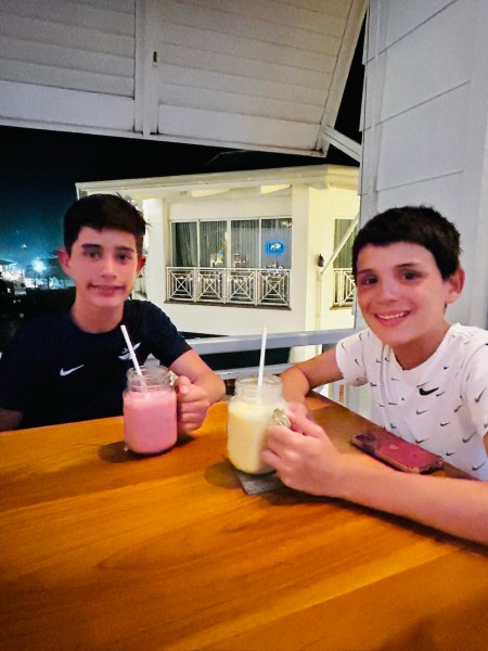 Ivan and the boys walked to the little grocery store to get something. You can’t really tell in this photo, but if you zoom in, you can see them walking down there on the street.