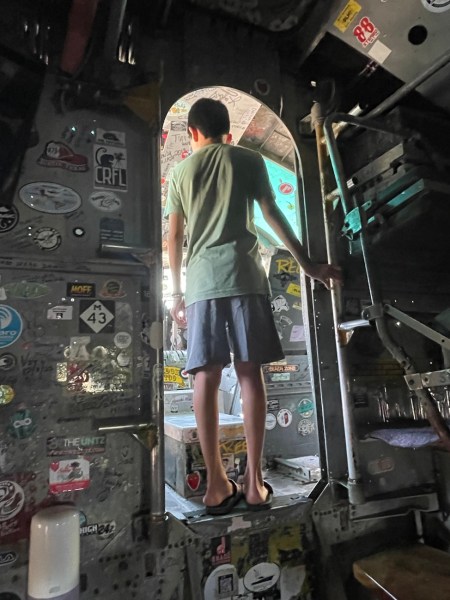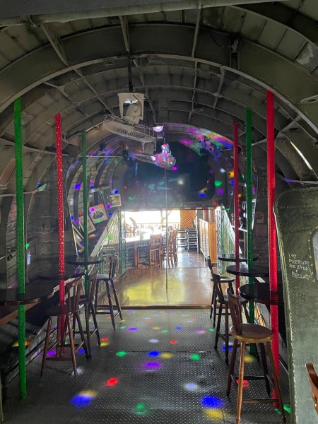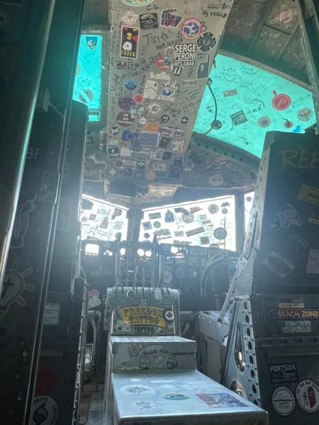 Here are some photos of the inside of the plane! It’s been turned into a bar, basically. People bring stickers from all over the world and plaster them inside. (The plane bar wasn’t open during the day- we just walked around to check it out.)