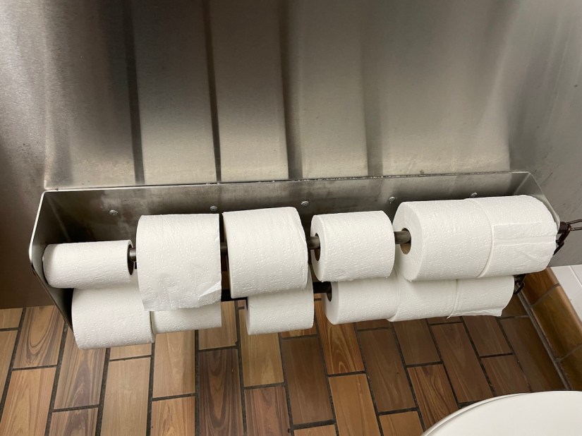 that toilet paper thing is hilarious! I guess it’s efficient to replace at once and let it “work” until run out. genius! I always keep a spare roll somewhere in the bathroom because I never want to run out. hahaha.