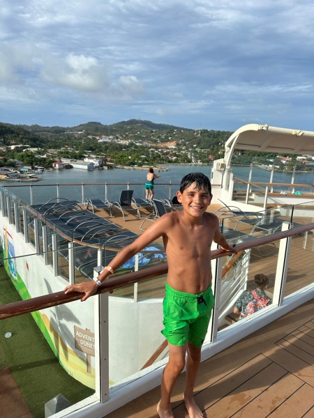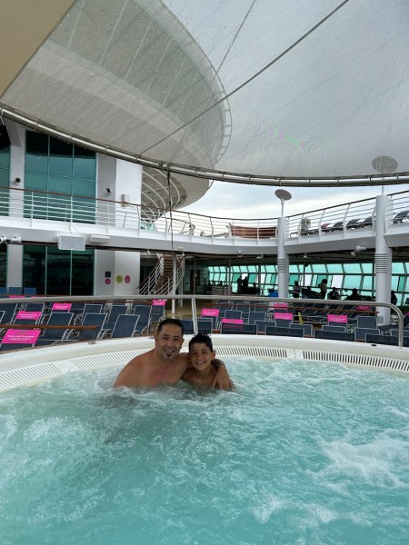 We had some time to kill after breakfast, so Ivan and I and Asher went in one of the hot tubs. One perk on the excursion days is that the pools and hot tubs are empty, if you stay on the ship instead!