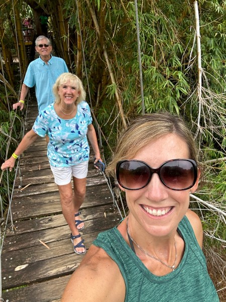 Crossed a cool suspension bridge- much smaller than the ones we did in Costa Rica, but still wobbly fun. 🙂