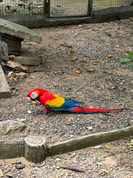 We took a bus to the park and then our tour guide took us through a rainforesty area to an insectarium and then to a macaw area.