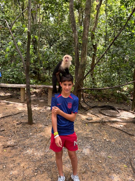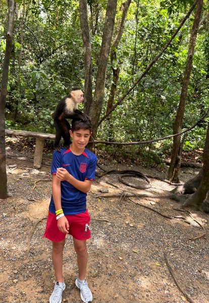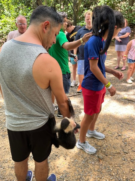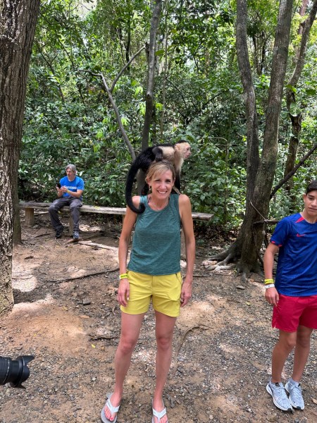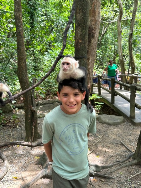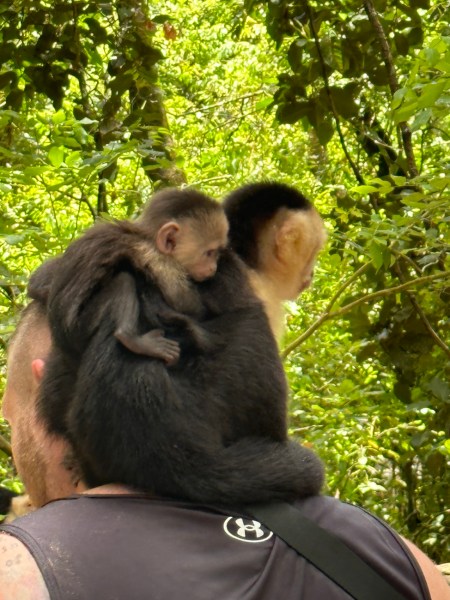 The highlight for everyone was what the park called Monkey Town. There were a bunch of white faced capuchin monkeys that live in the park and are also cared for, vaccinated, etc but live free in the trees there. They jump right on your head or crawl on your shoulders and they are sooooooo cute!!! Asher said, “Well this was a once in a lifetime experience!” Lol.