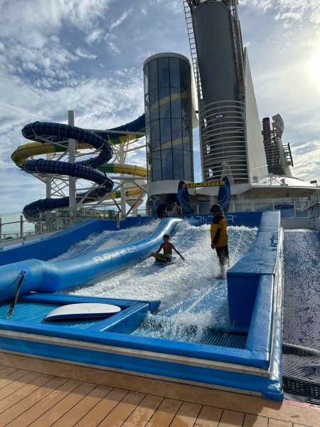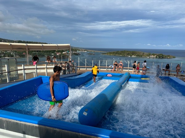 Then we spent the rest of the afternoon on the ship. The kids swam, played around, etc. My boys did the Flow Rider surf/boogie board thing for a long while.