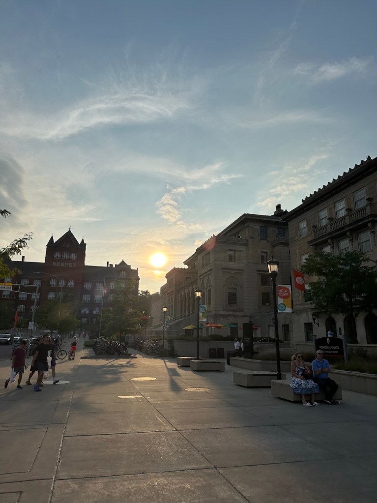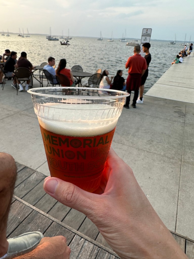 Originally we were just going to stay home Saturday night, but it was just so beautiful out. We decided to drive down to the University of Wisconsin- Madison Memorial Union Terrace along Lake Mendota, which is probably one of the biggest gems of the university. It’s a major fan favorite spot. They have live music at night and these iconic chairs and tables: