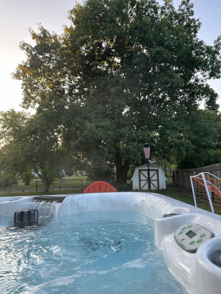 The weather has cooled off enough that the hot tub is sounding really good again. So I jumped in there early Saturday morning for a while: