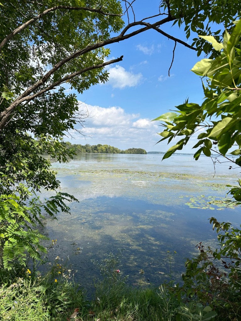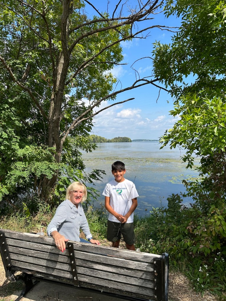 When our shift was done, Asher insisted on throwing his fishing line in the water for a few minutes. (He had brought it along….). So pretty on the lake there!