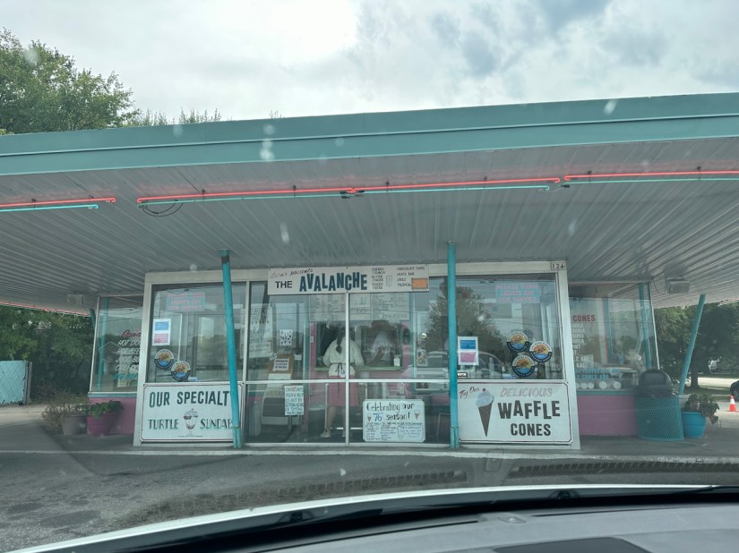 The game was in Oshkosh, which is where my parents both grew up and my grandparents lived during my whole childhood. I decided to take Asher for lunch to this cute, old-fashioned drive-in diner that was near my Grandma’s house. My dad actually worked there a million years ago back in the day, and when my Grandma was older and not as well anymore, my mom used to always take her on drives there for hot dogs and hot fudge sundaes.