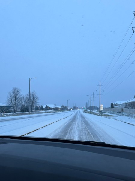 Our first real snowfall! And Ethan’s first time driving in the snow. (Photo taken from passenger seat on the way to Ethan’s 7 am McDonald’s shift.)