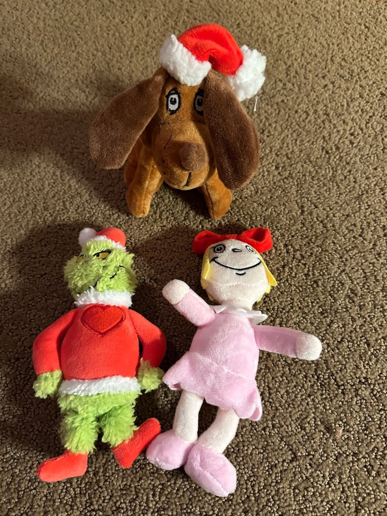 I am grateful for some super cute Christmas dog toys that my mom sent for Charlie! She actually mailed them since we won’t see them until after Christmas now… they are adorable!! The Grinch, Max, and Cindy Lou Who.