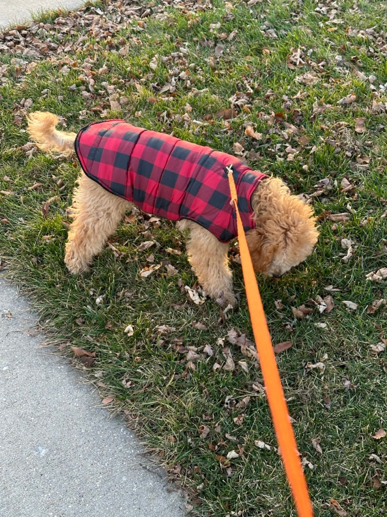 I love Charlie in his coat! Does he like getting dressed? Hannah only sort of tolerates it because it allows her to go for walks when it’s super cold out.