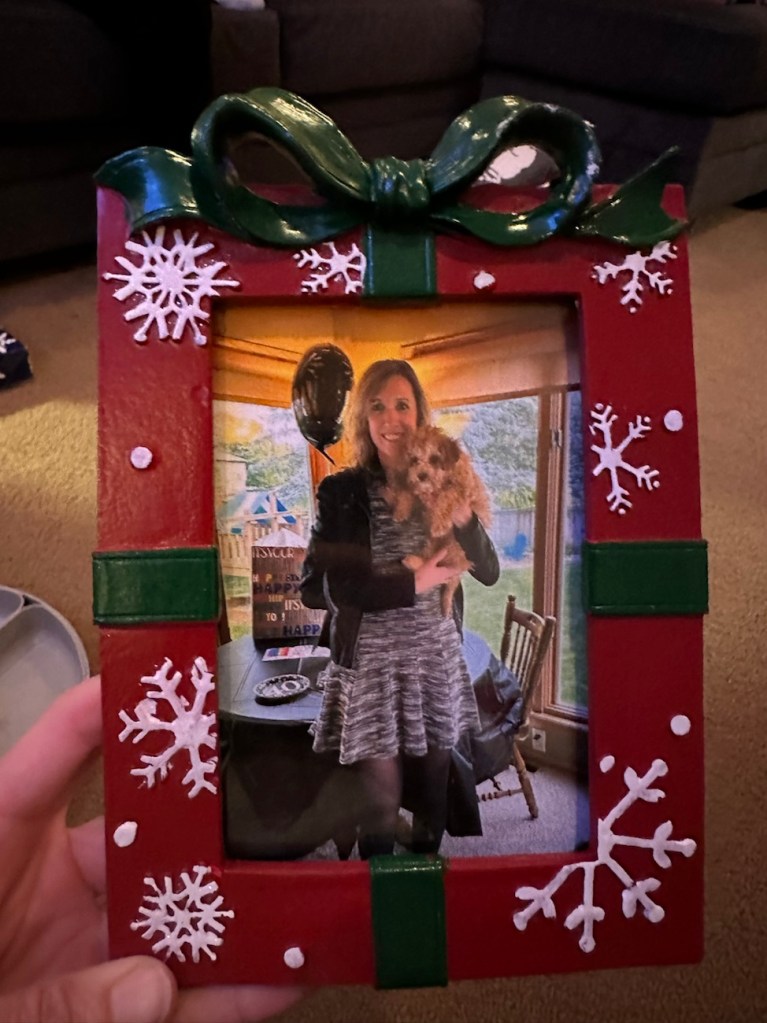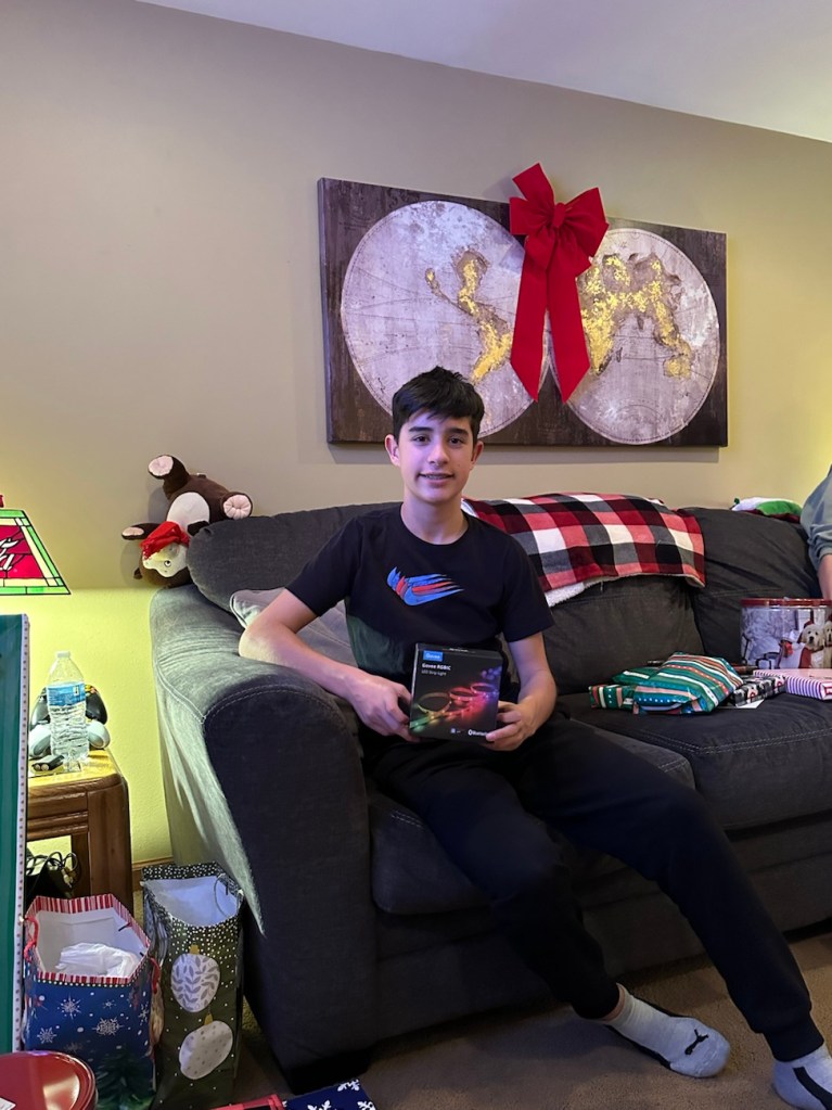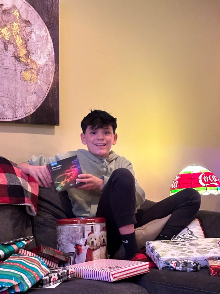 The boys got some clothes, books, Xbox gift cards, a piano book, misc things like a blender bottle and ornaments, etc. My mom always rises to the challenge of figuring out what to gift teenagers that honestly really don’t need much….