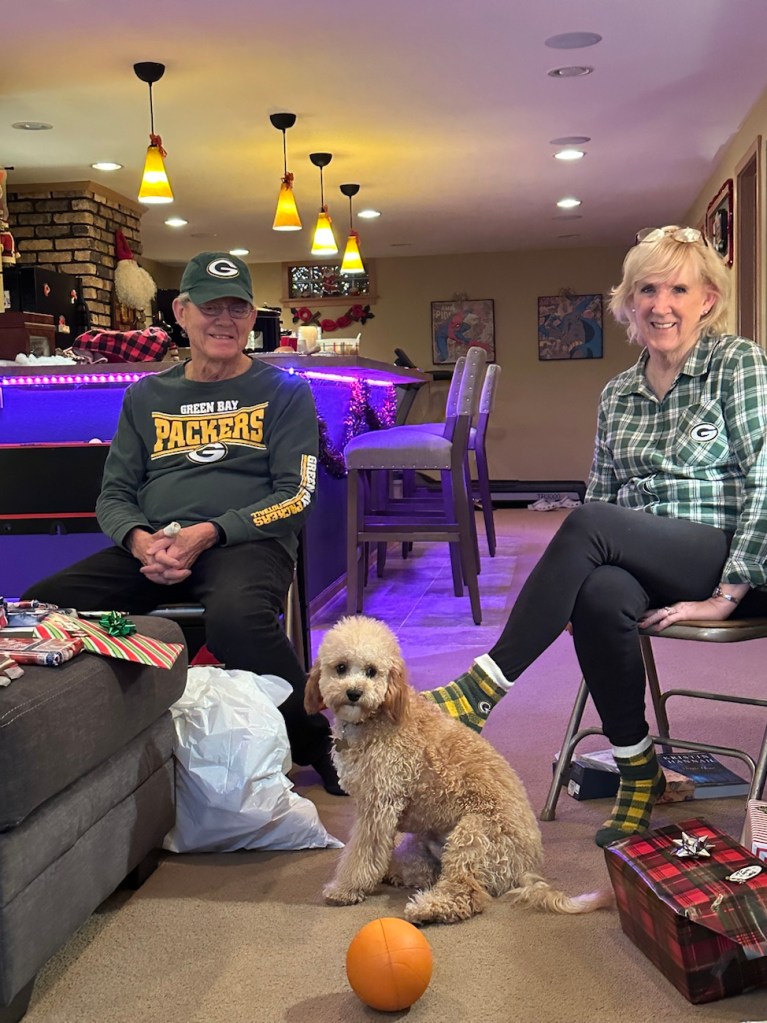 Turns out the Packers vs 49ers playoff game was also happening Saturday night, so we made the executive decision to all wear comfy clothes and wear our Packers gear. 🙂