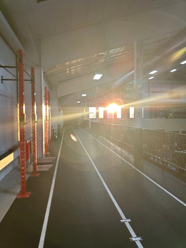 Got some nice sunshine streaming in the gym window at the end of Tuesday’s workout. 🙂