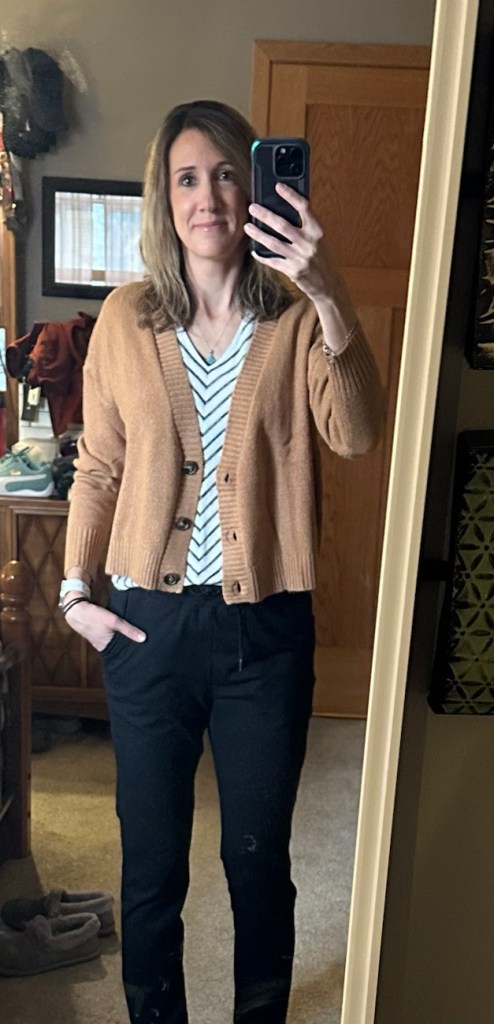 Yes, I saw those posts too! Great ones! I love the uniform idea. At home mine is mostly black leggings and a top, on the weekend usually exercise clothes or sweats/joggers! My bigger struggle is when I need to go out places where I can’t be in my preferred casual/comfy clothes. I do have a lot of clothes but just can get overwhelmed with what to choose, and have had trouble finding certain staples (like pants/jeans) over the years that I really love and work in all situations.