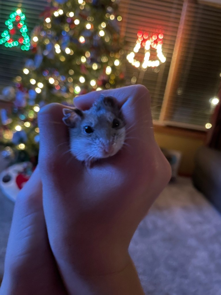 Sorry to hear about the hamster though! She does look quite terrified/startled to be out of the cage!