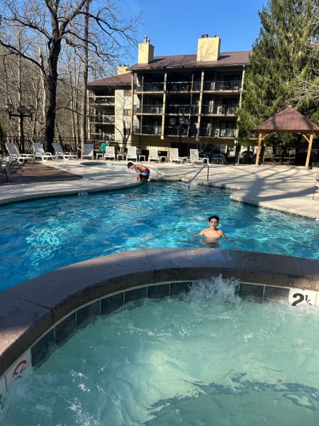 We all hit the hot tub with coffee/ tea. I couldn’t believe that NO ONE else in the resort seemed to use the hot tub in the mornings! In fairness, there are 3 big pool/hot tub complexes across the resort, so perhaps we just got lucky and people were using the other ones?