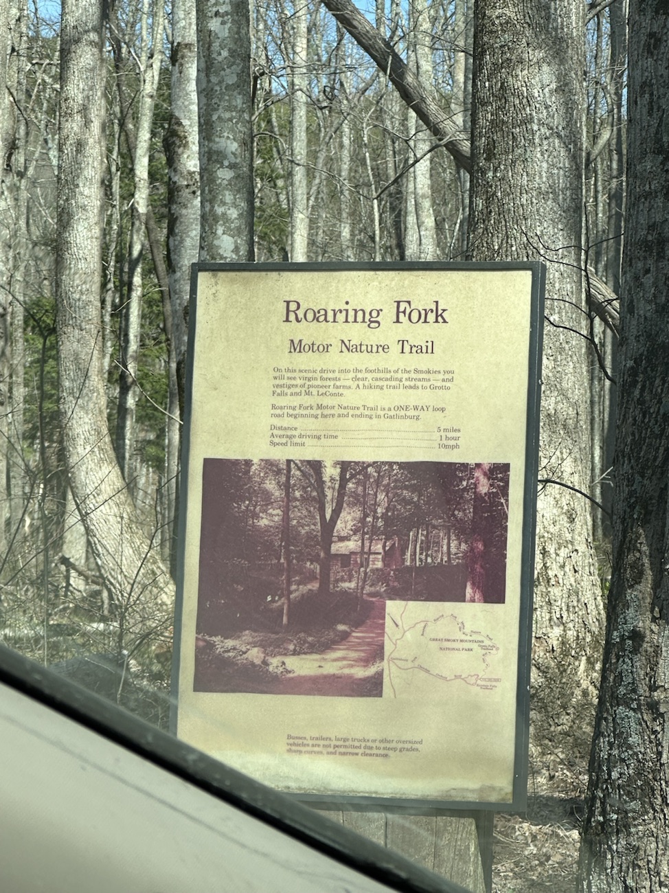 One of the major driving “routes” in the park is the Roaring Fork Motor Trail. It’s a 6 mile loop, but is rather steep and is closed during the winter. Well, in my research I had learned that it opened for the season on Friday, March 29 (the day before).