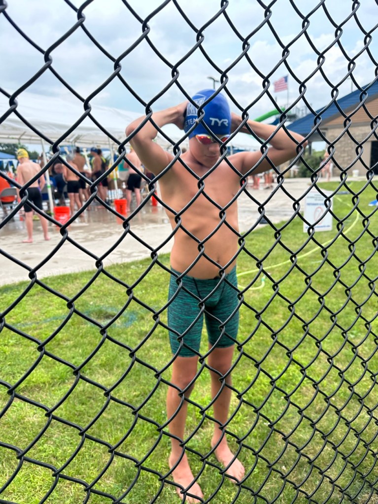 A huge storm moved in in the evening which ended up cutting the meet short, too. He only got to swim 2 out of his 3 events. 😦