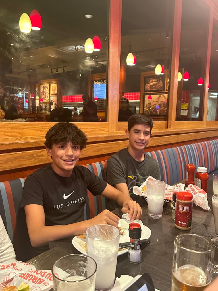 I feel like we do less of these “just the 4 of us” meals out nowadays. Many times when we go out my parents are along, which is awesome, but also then it means dinner conversation for a group of 6 often morphs a little more into “adult conversation” on one end of the table and the boys kind of on the other. Or, even more commonly lately, the boys are either busy/don’t even want to go and it ends up being just me and Ivan!
