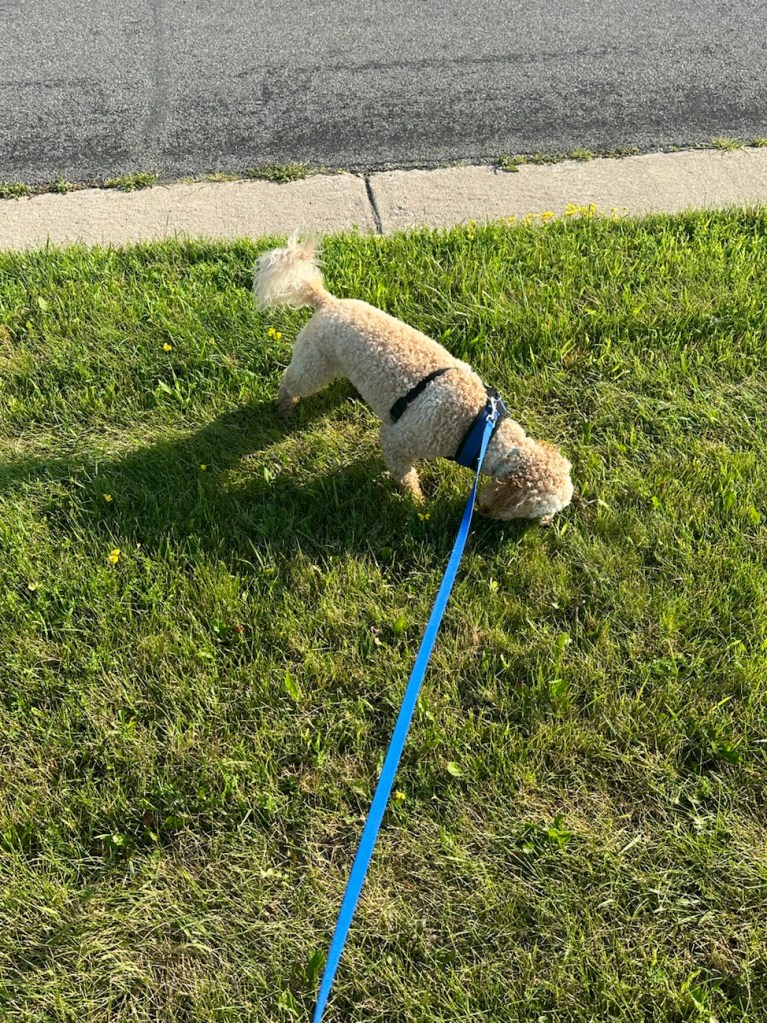 My walk pace with Rex is similar to yours! Sniff sniff sniff, etc.