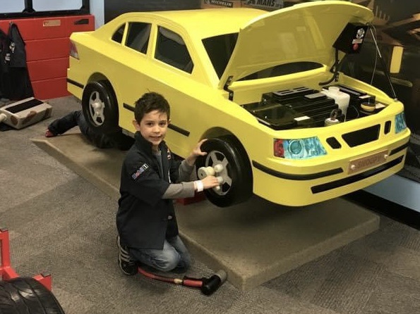 Here they are in 2016 playing around at the Corvette Museum in Bowling Green, Kentucky, on a trip to Mammoth Cave National Park. And yesterday they drove off in a real car together…. what.