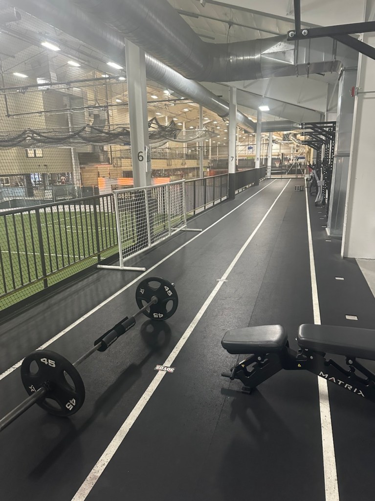 Love these private workout stations up on the sprint track. Often have it all to myself, depending on the time of day. Setting up for hip thrusts here.