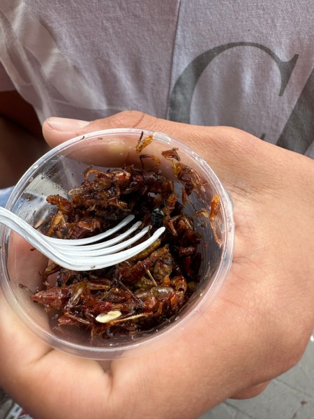 Yum…. What’s the line from The Lion King when they eat grubs? “Slimy, yet satisfying?” I guess these are crunchy, though.