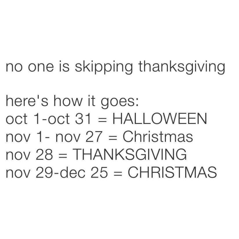 First of all- that meme is hilarious!!! I used to be so adamant about not starting Christmas until after Thanksgiving, but you’re right- it all goes so fast. I need as much Christmas as I can get! We won’t actually put up our tree till Black Friday, but other Christmas things will start creeping in this month. I’m also thoroughly enjoying all the Christmas things I’m seeing in stores.