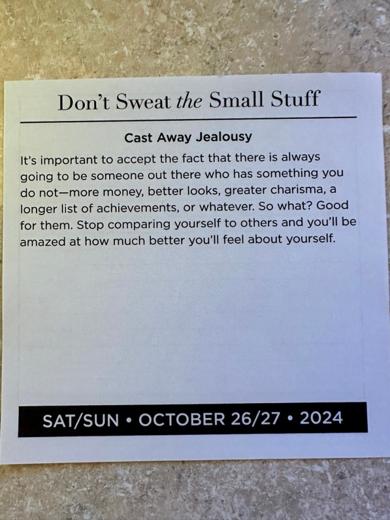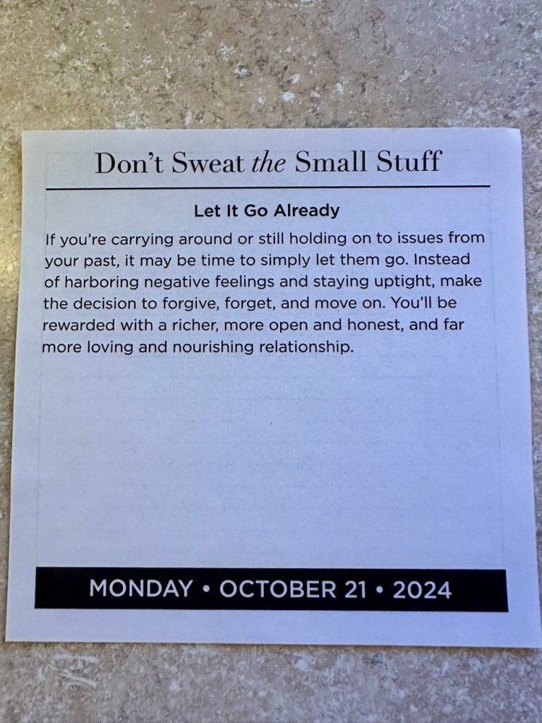 I love “Don’t Sweat the Small Stuff.” These are great quotes. Search for the grain of truth in other opinions- it’s usually there. And, let it go! You can’t go wrong with that one.