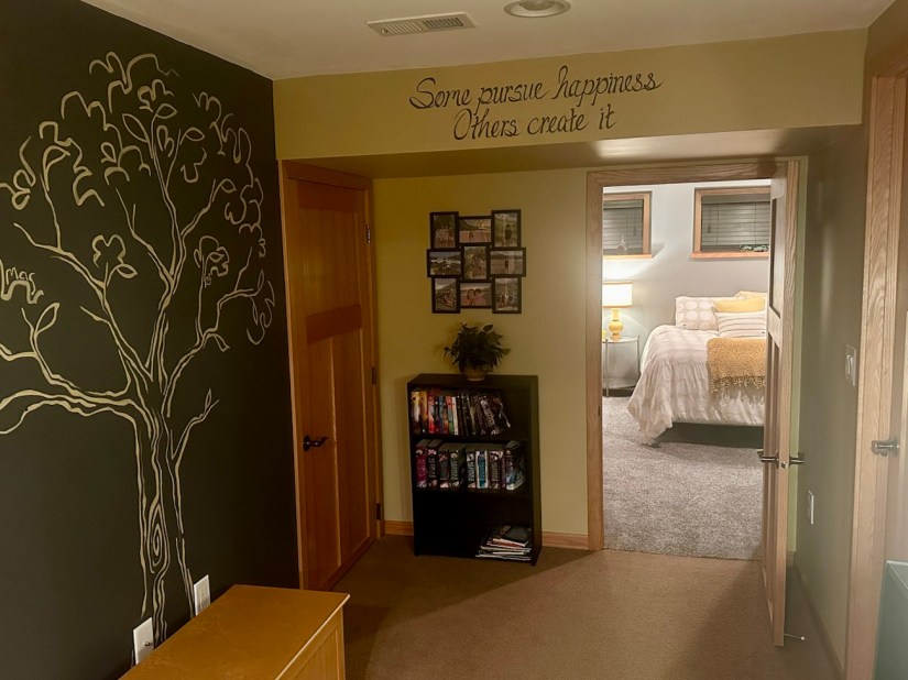 I think I’ve shared this little nook in our basement before, but isn’t it so cute? I just love that stenciled quote.