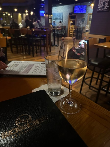 Given the craptastic day I had, I asked Ivan if he wanted to stop for a glass of wine at this great local restaurant right by our house. He’s basically always game to go out, so we dropped Asher at swim practice at 7:05 and then went to the restaurant.